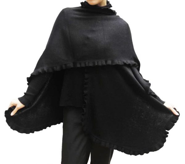 Luxurious Baby Alpaca cape with stunning ruffled edge. Elegance and glamour define this supersoft cape. A timeless piece that will make any outfit look fabulous.