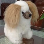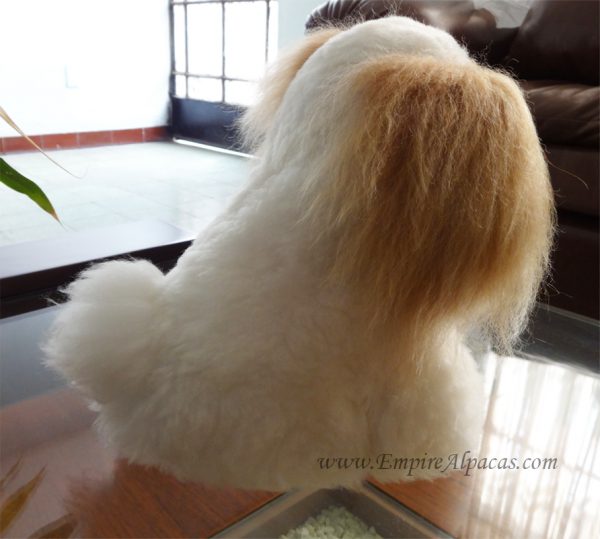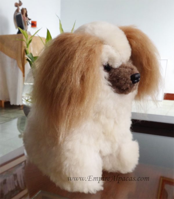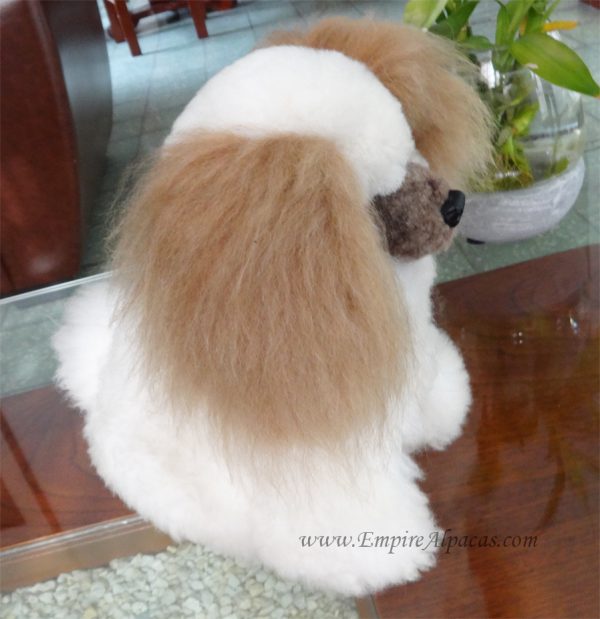 Lovely dog stuffed, made of baby alpaca, with soft texture ideal for gift and is beige long coat.