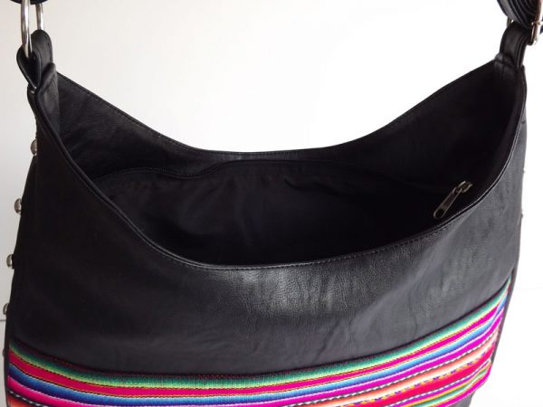 Application bag with colored blanket over black synthetic leather. inner lining black color.