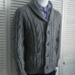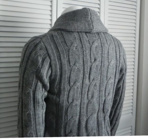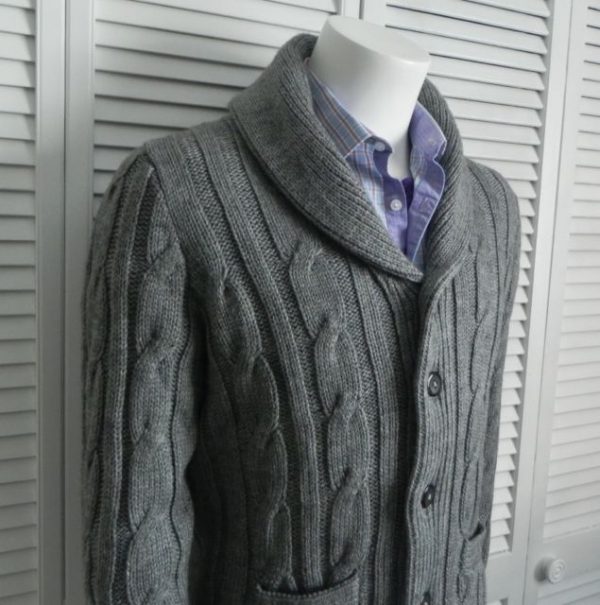 Mens sweater Gray Elegant Cable Knit Shawl Collar Cardigan Sweater