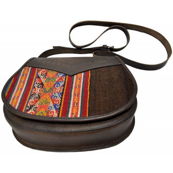 Peruvian Leather and Aguayo Shoulder Bag, Unique Cloth and Leather Handbag