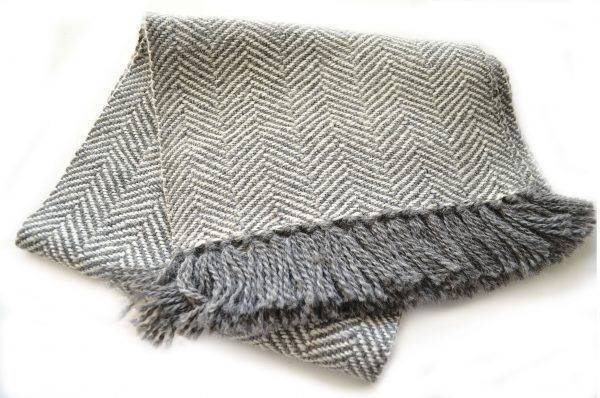 Classic design for this alpaca scarf 100% natural loom woven with thin frame design with pins or cordillate combining gray with white.