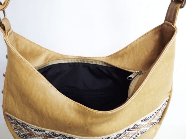 Application shoulder bag blanket over beige leatherette. inner lining black color.
